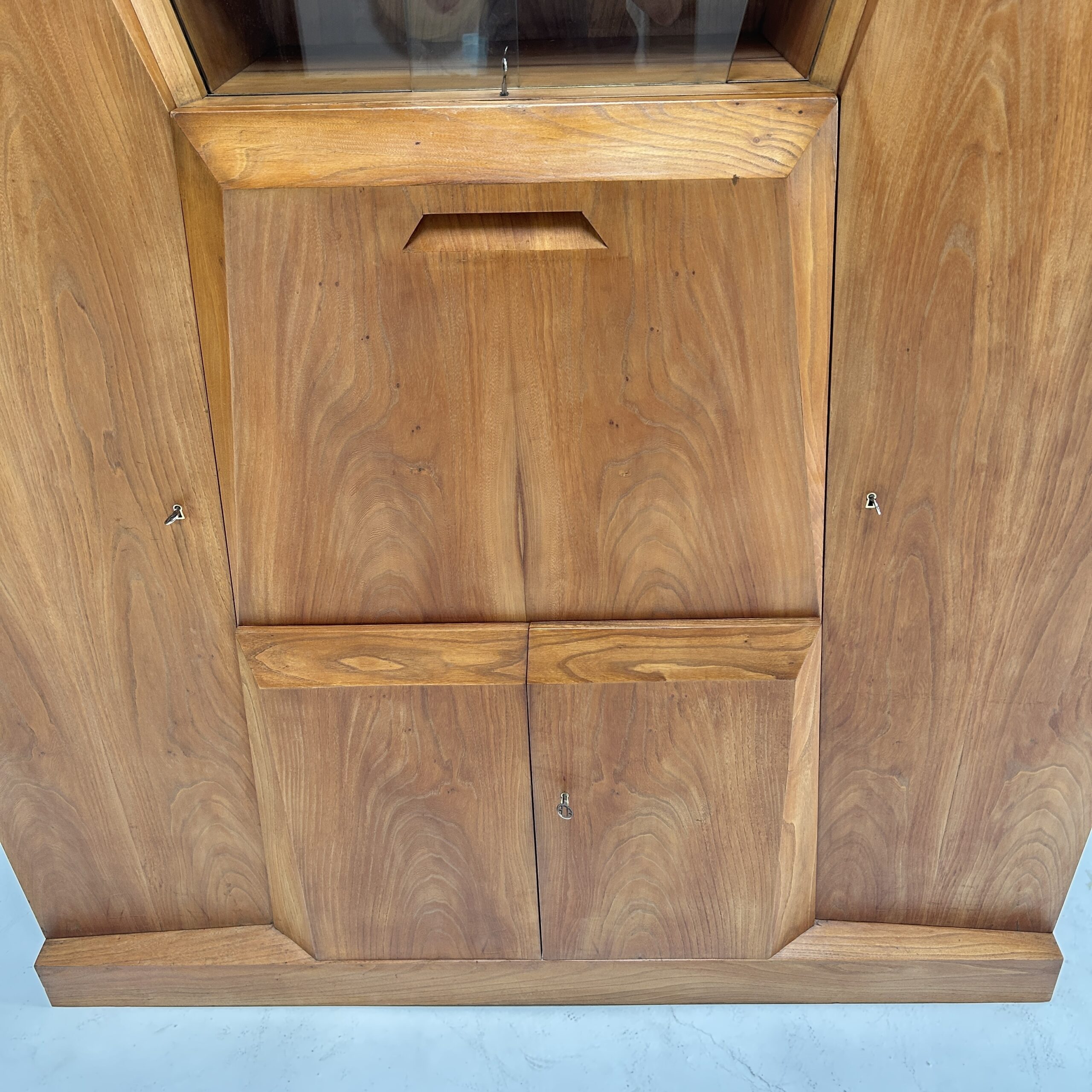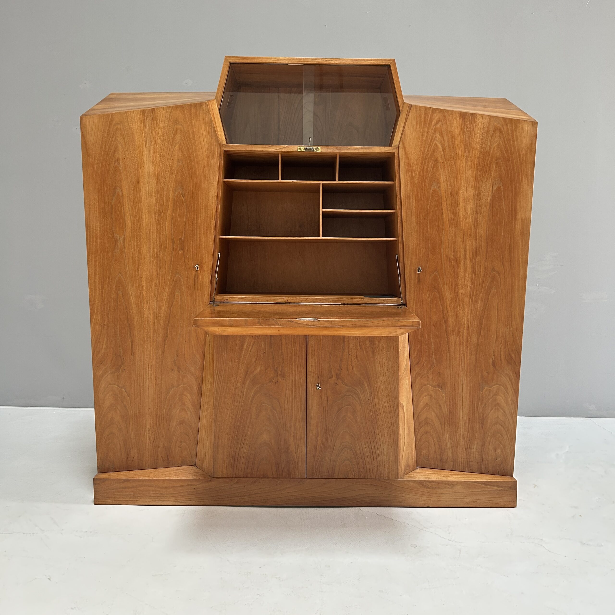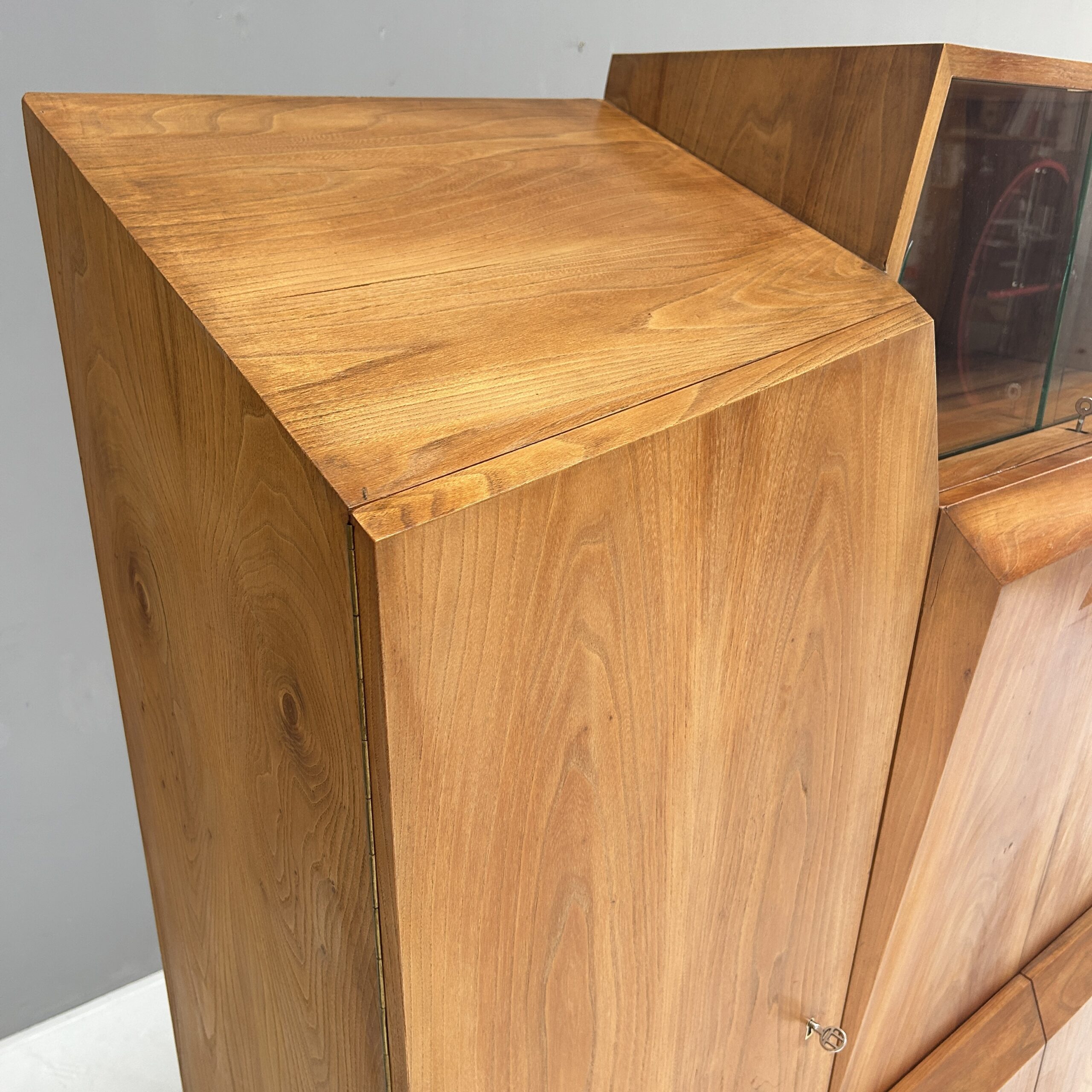 The anthroposophical writing cabinet combines a wide range of possibilities in the smallest of spaces. As a small office, as a display cabinet or as a large storage space for a variety of things, with faceted surfaces and usually without right angles, in keeping with the anthroposophical philosophy 🙂