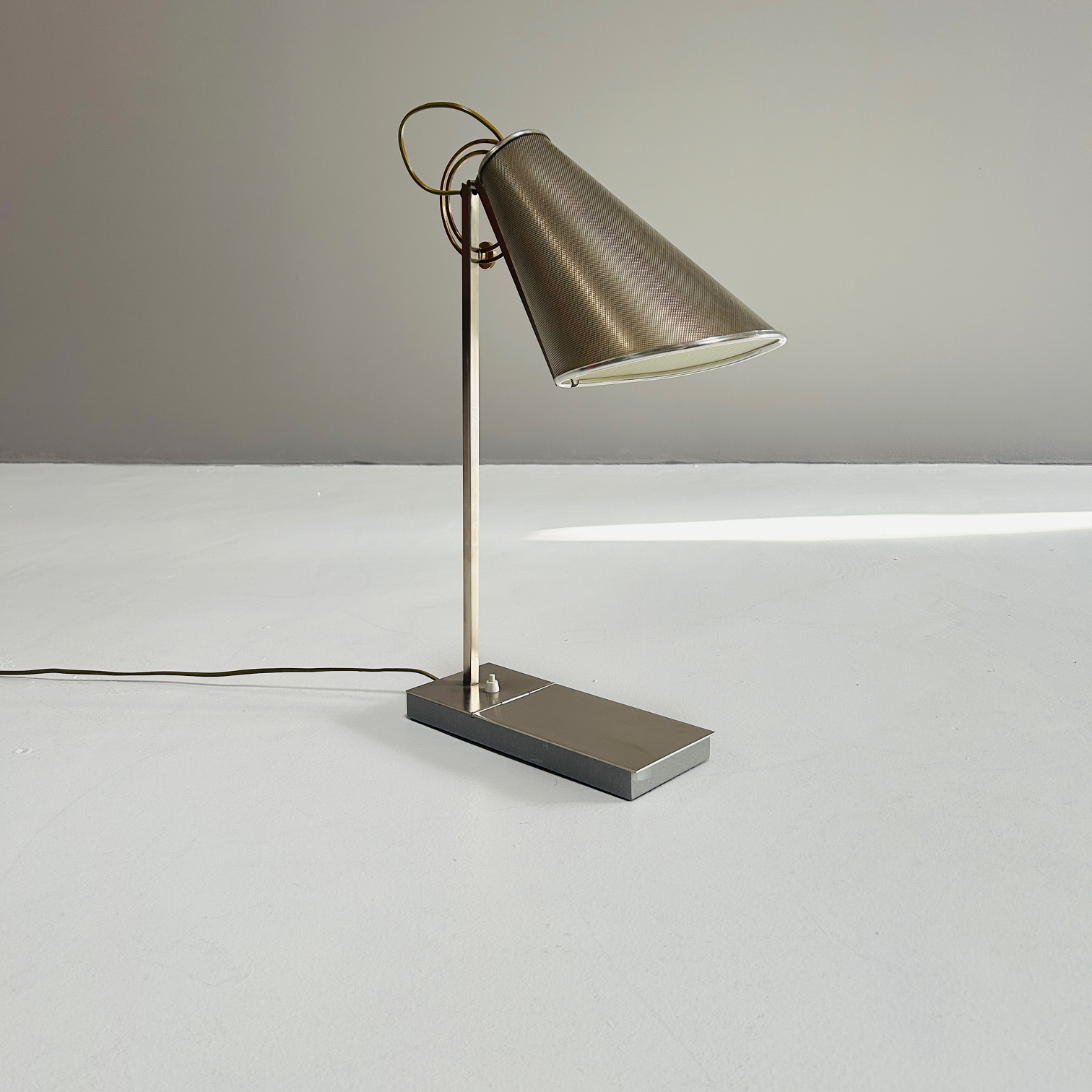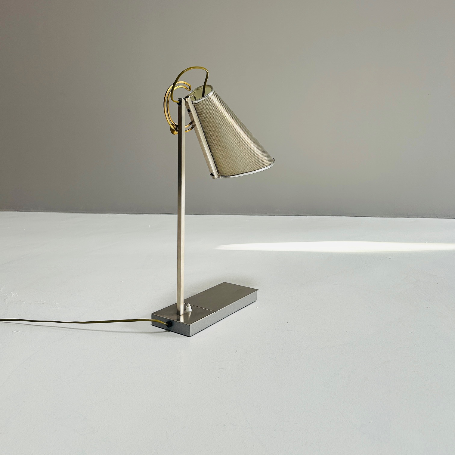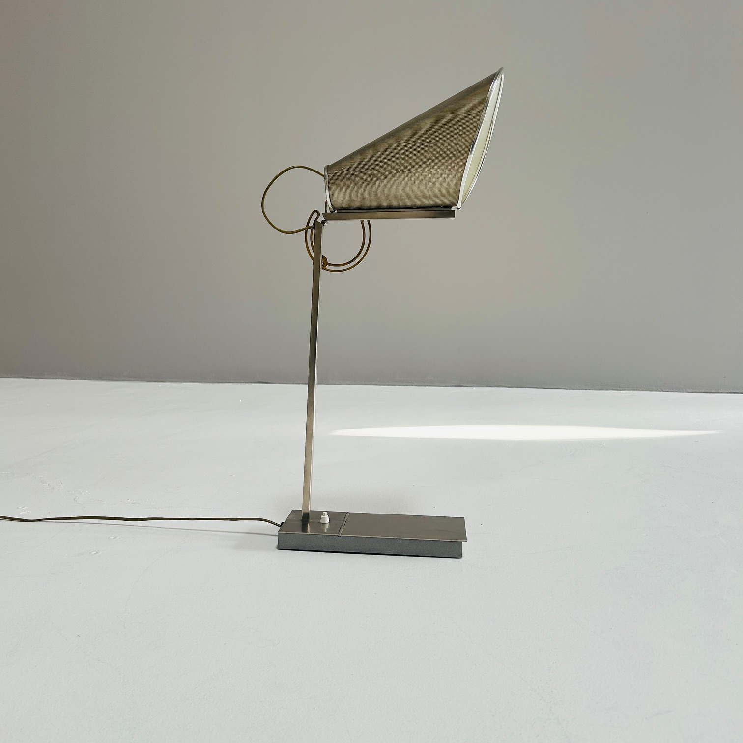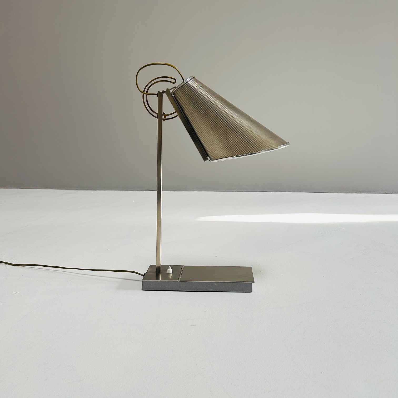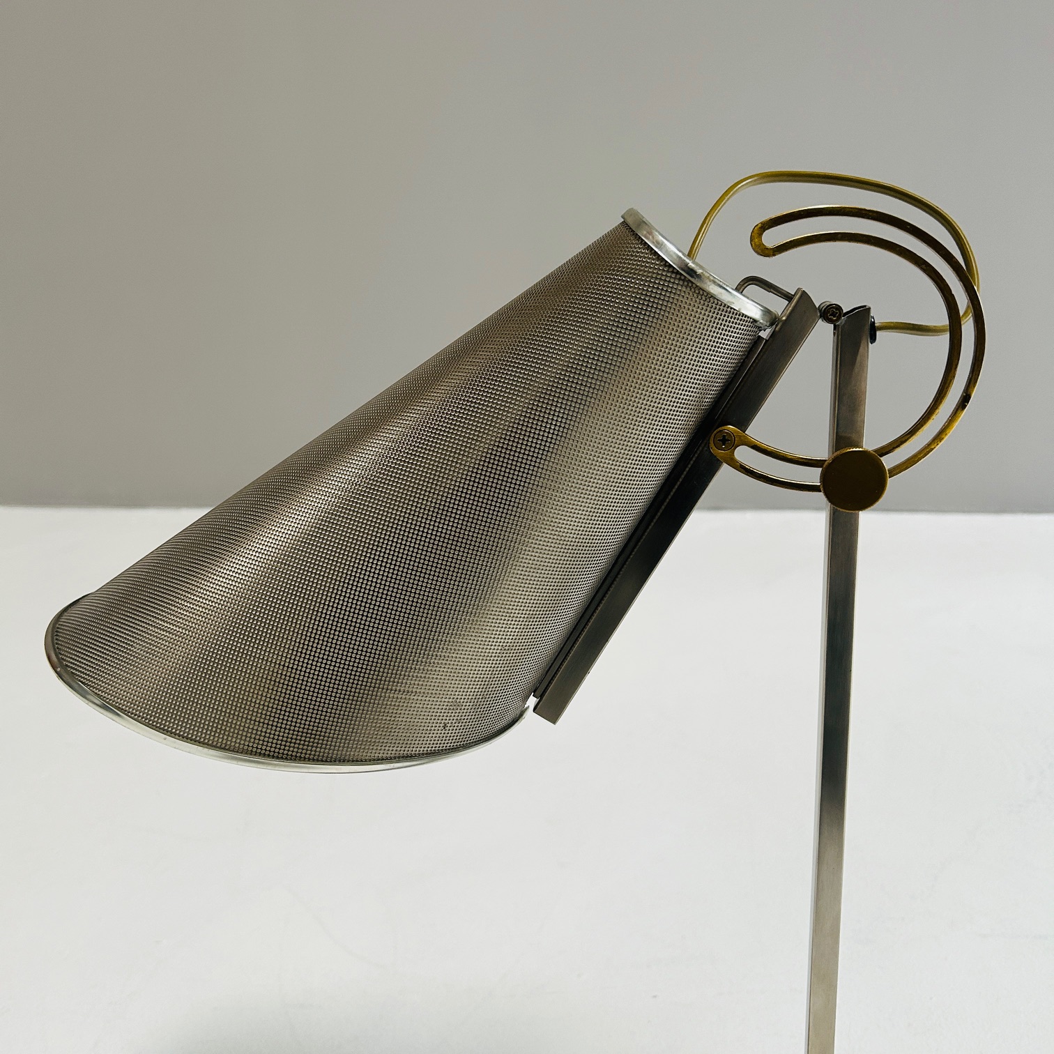 Tischlampen genannt „Compass Dans L´Oeil“ von Andreé Putman für Baldinger & Sons mit einem perforiertem Schirm in Metall. Verkauf über Studio Ecart.