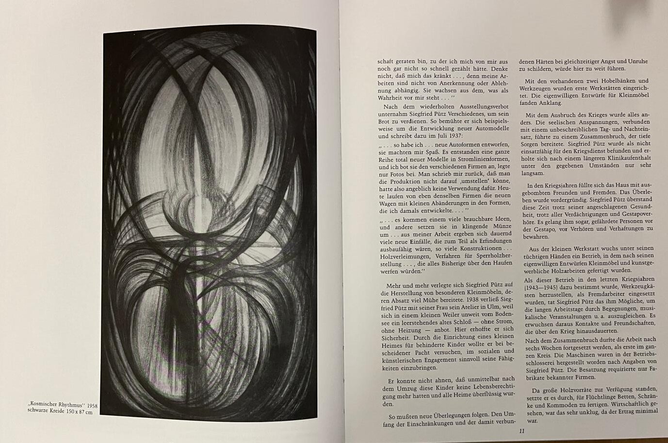Der Sessel entstand in der Zeit zwischen 1930 und 1945, als dem Künstler und Gestalter Siegfried Pütz während der nationalsozialistischen Herrschaft ein Berufsverbot auferlegt war.