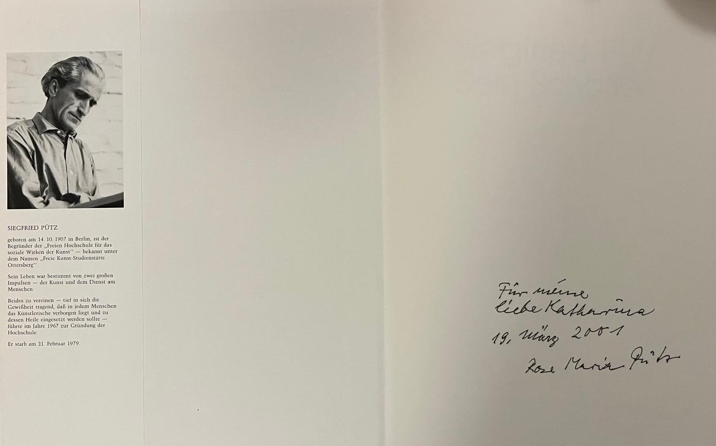 1965 gründeten sie gemeinsam die „Rudolf-Steiner-Arbeits- und Studienstätte für das soziale Wirken der Kunst“. Aus dieser Einrichtung ging 1967 die Freie Kunststudienstätte Ottersberg hervor, die 1984 die staatliche Anerkennung als Fachhochschule für Kunst, Kunstpädagogik und Kunsttherapie erhielt.