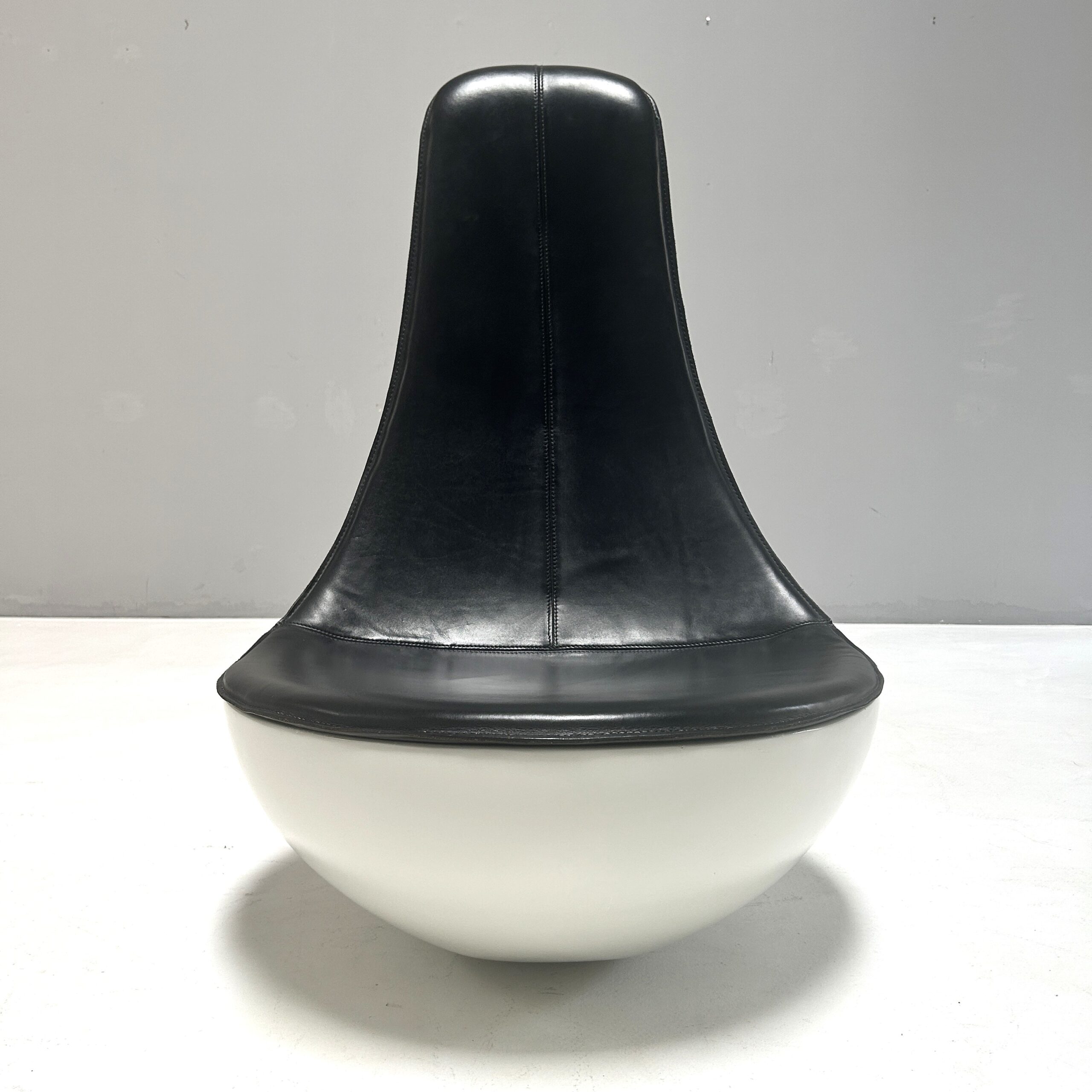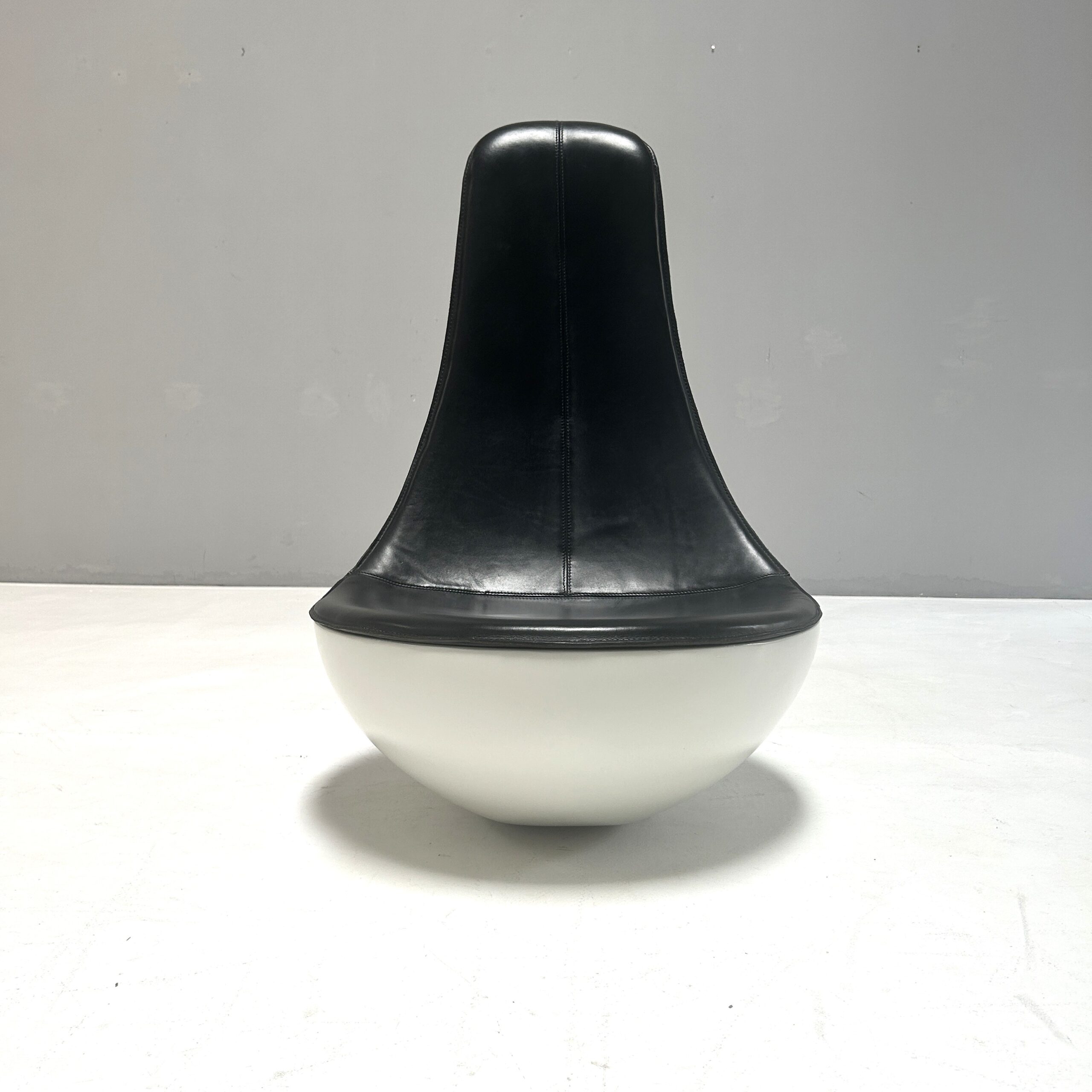 Dieser ikoischer Space age Sessel mit einer Sitzschale aus hochwertigem Kernleder verbindet futuristische Ästhetik mit exeptionellem Komfort.