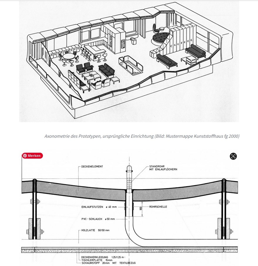 Pic.2 Axonometrie des Prototypen, ursprüngliche Einrichtung (Bild: Mustermappe Kunststoffhaus fg 2000)